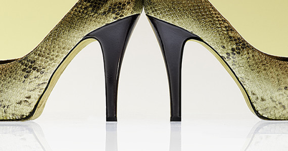 Podem comentar tres quarts del mateix, un taló, per molt alt que sigui no dona una visió clara de com és una sabata. El frontal és la part estètica que es veu més i per tant la que té més importància. L’alçada del taló ens dona vertigen, una sensació que no té res a veure (o gairebé res) amb la sabata en sí. També podem llegirla a modus de fetixista, sabata alta, color vermell, un element provocatiu dins del llenguatge visual i que posa en marxa les imaginacions entrenades.
